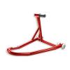 Zerlegbarer Boxenständer für Hinterrad mit auf Lagern montierten Gummirädern.