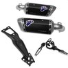 Das Paket enthält: zugelassene Schalldämpfer, Kennzeichenhalter aus Kohlefaser, 1 Paar LED-Blinker.