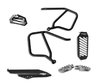 Das Kit enthält: Fußrasten aus Aluminium, Frontschutzbügel, Kettenschutz, Seitenständer-Verbreiterung.