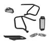 Das Kit enthält: Fußrasten aus Aluminium, Frontschutzbügel, Kettenschutz, Seitenständer-Verbreiterung.