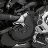 Edler aus dem vollen Aluminium gefräßter Schutz für die sturzgefährdet auf der linken Motorseite liegende Wasserpumpe.