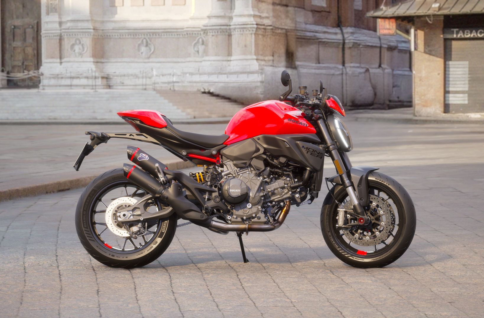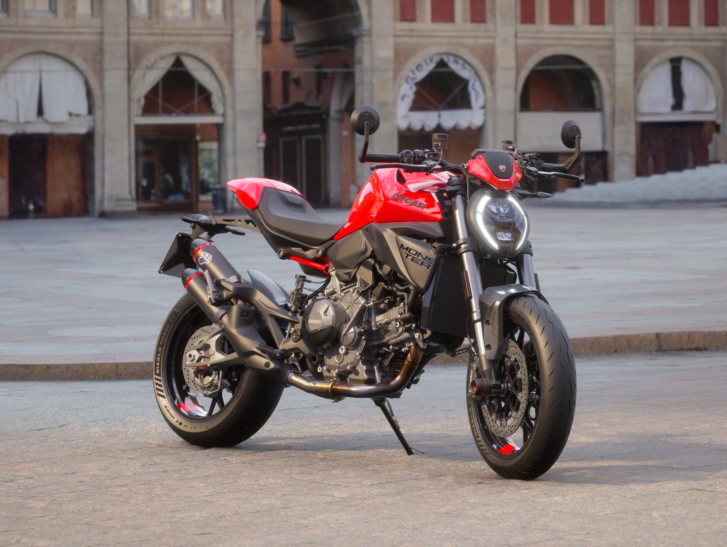 Zeitgeist und Tradition verschmelzen in der leichtesten und technisch fortschrittlichsten Monster mit 4-Ventil-Motor aller Zeiten. Ein bis ins Detail durchdachtes Motorrad, das dennoch dieselbe Seele bewahrt, die Ducati für immer verändert hat: pur, unverwechselbar und auf das Wesentliche konzentriert.