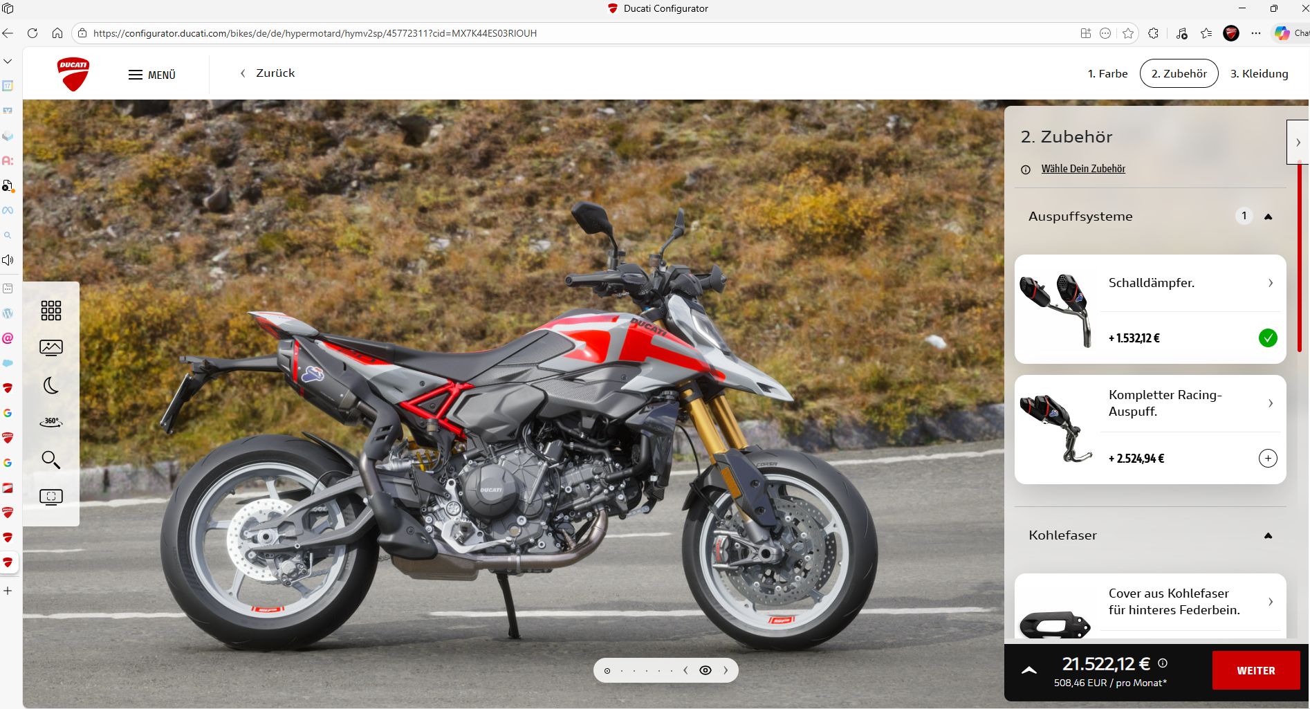 Oder nach Schritt 3 "drucken" Sie die Konfiguration als PDF-Datei aus und senden Sie sie an info@ducatisaarland.de