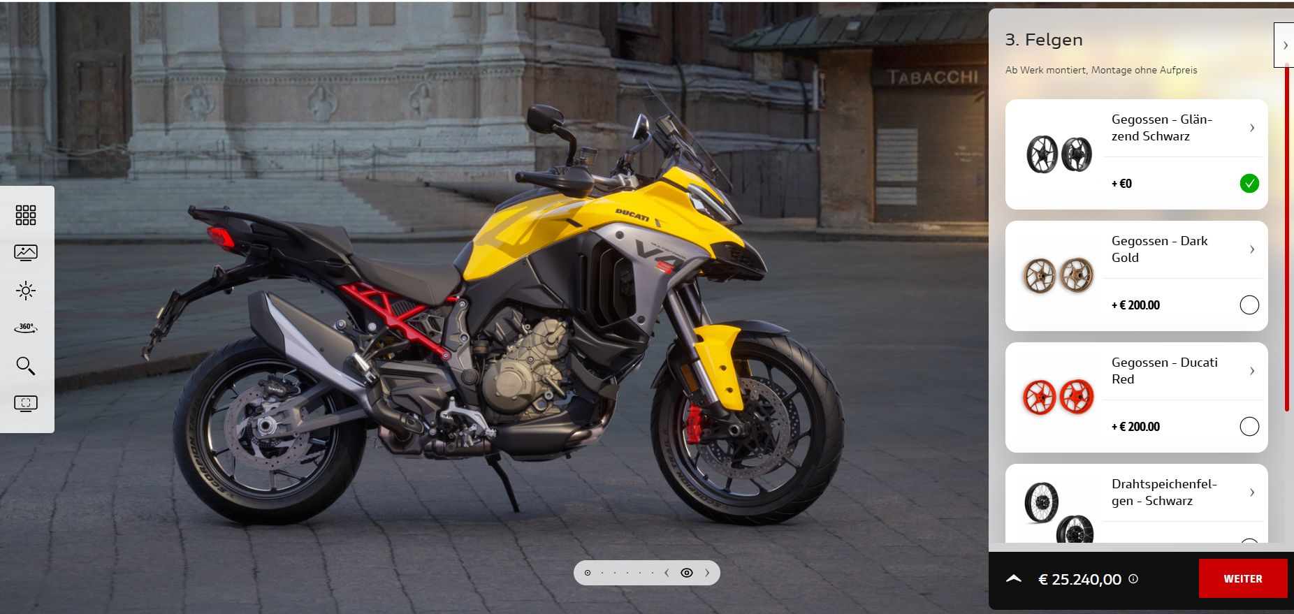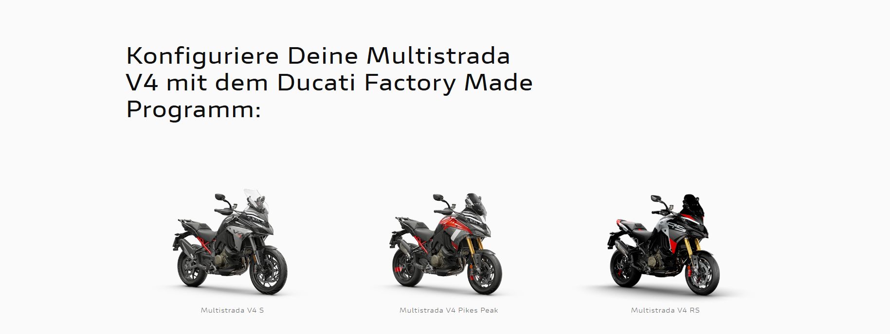 Maßgeschneiderte Farben, Optionen und Zubehör für die Multistrada V4 direkt ab Werk !