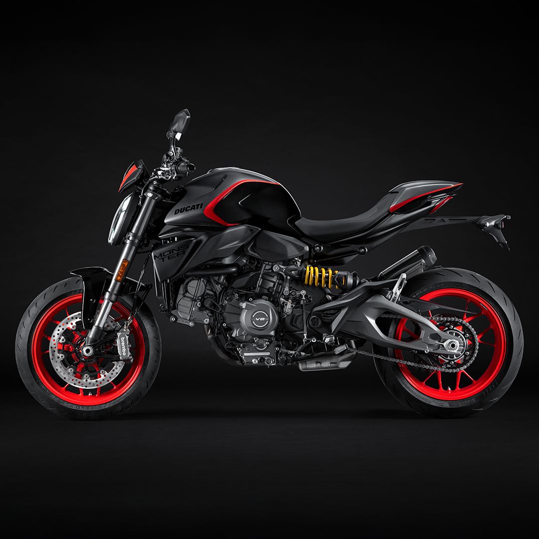 Ideal sowohl für Einsteiger als auch für erfahrene Fahrer kombiniert die neue Monster Kompaktheit und Leichtigkeit in einer modernen Interpretation des Naked-Sportbike-Konzepts, das Ducati einst erfunden hat. Die Leistung der Monster bleibt dank der klassenführenden Elektronik jederzeit kontrollierbar und wird von einem modernen und authentischen Design begleitet. Gleichzeitig bewahrt die Monster die DNA der ersten Generation von 1993: ein kraftvoller V2-Motor in Kombination mit einem von Superbikes abgeleiteten Rahmen, der in der aktuellen Generation als Aluminium-Monocoque ausgeführt ist. Alles, was man braucht – und nichts mehr.