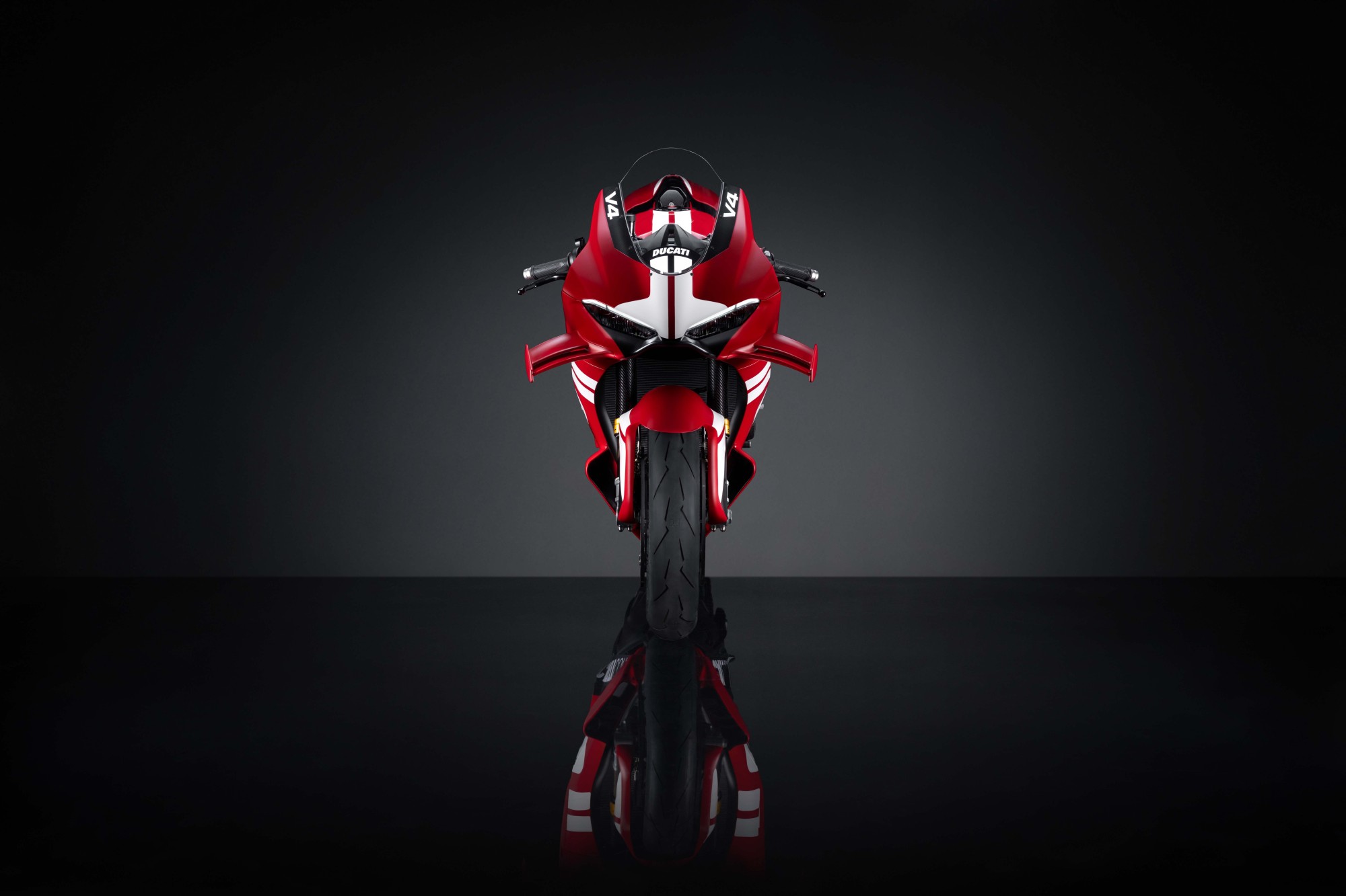 Mit der auf 500 Stück limitierten Superleggera V4 Centenario macht Ducati sich und seinen Fans ein besonderes Geschenk zum 100-jährigen Firmenjubiläum. Es handelt sich um das weltweit erste straßenzugelassene Motorrad mit Carbon-Keramik-Bremsscheiben und Carbon-Federgabel. Auch Rahmen, Schwinge und Verkleidung bestehen aus CFK. Das Trockengewicht liegt dank konsequentem Leichtbau in nahezu allen Bereichen bis hin zu Titanschrauben bei 173 Kilogramm. Zusätzlich zu den 500 Superleggera V4 Centenario wird es noch 100 „Tricolore“-Ausführungen geben.
